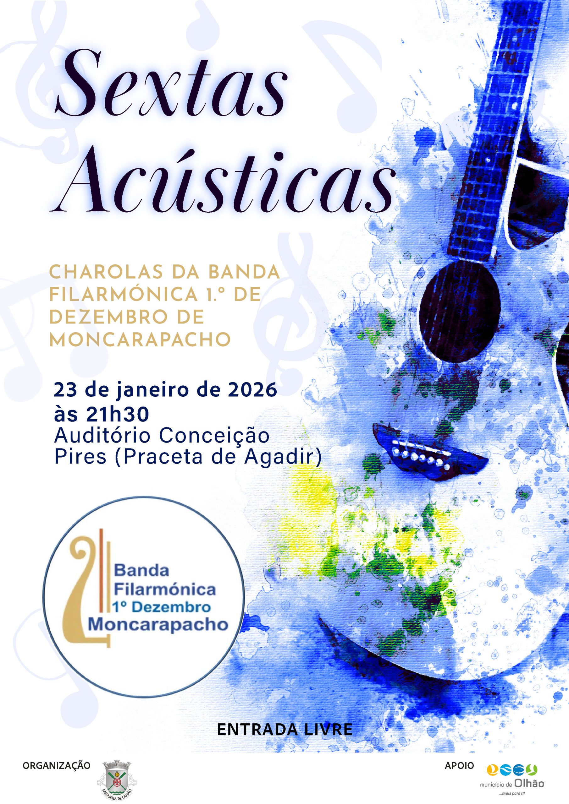Sexta-Acústica com as Charolas da Banda Filarmónica 1.º de Dezembro de Moncarapacho | 23-01-2026 | 21H30 | Auditório Conceição Pires em Olhão